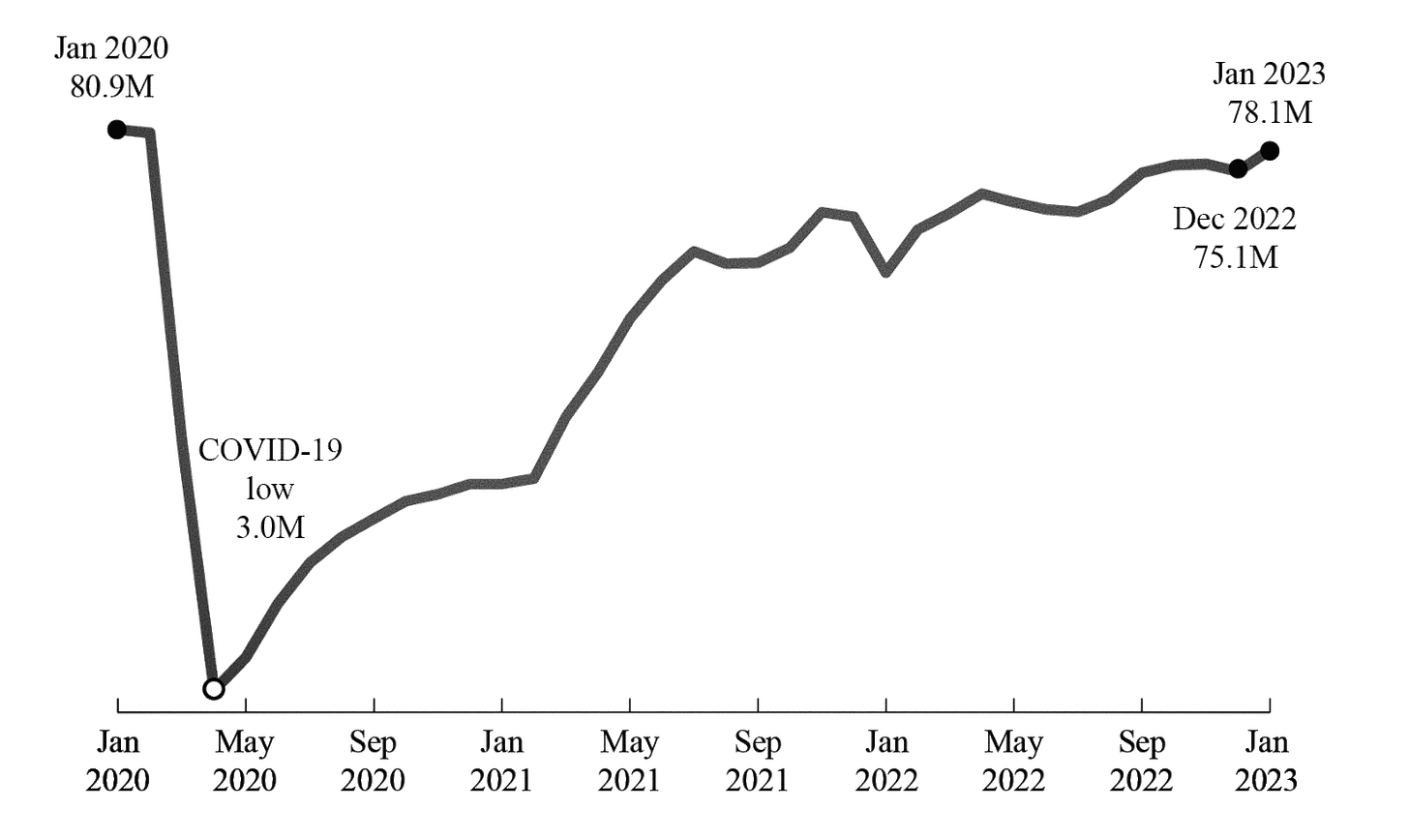 Часи дешевих грошей минули, відсоткова ставка зросла, а обсяг зобов'язань, що дуже роздувся, у вигляді виплати відсотків по облігаціях нікуди не подівся. Так ми плавно підходимо до січня 2023-го — моменту, на який американська економіка чекала кілька років.